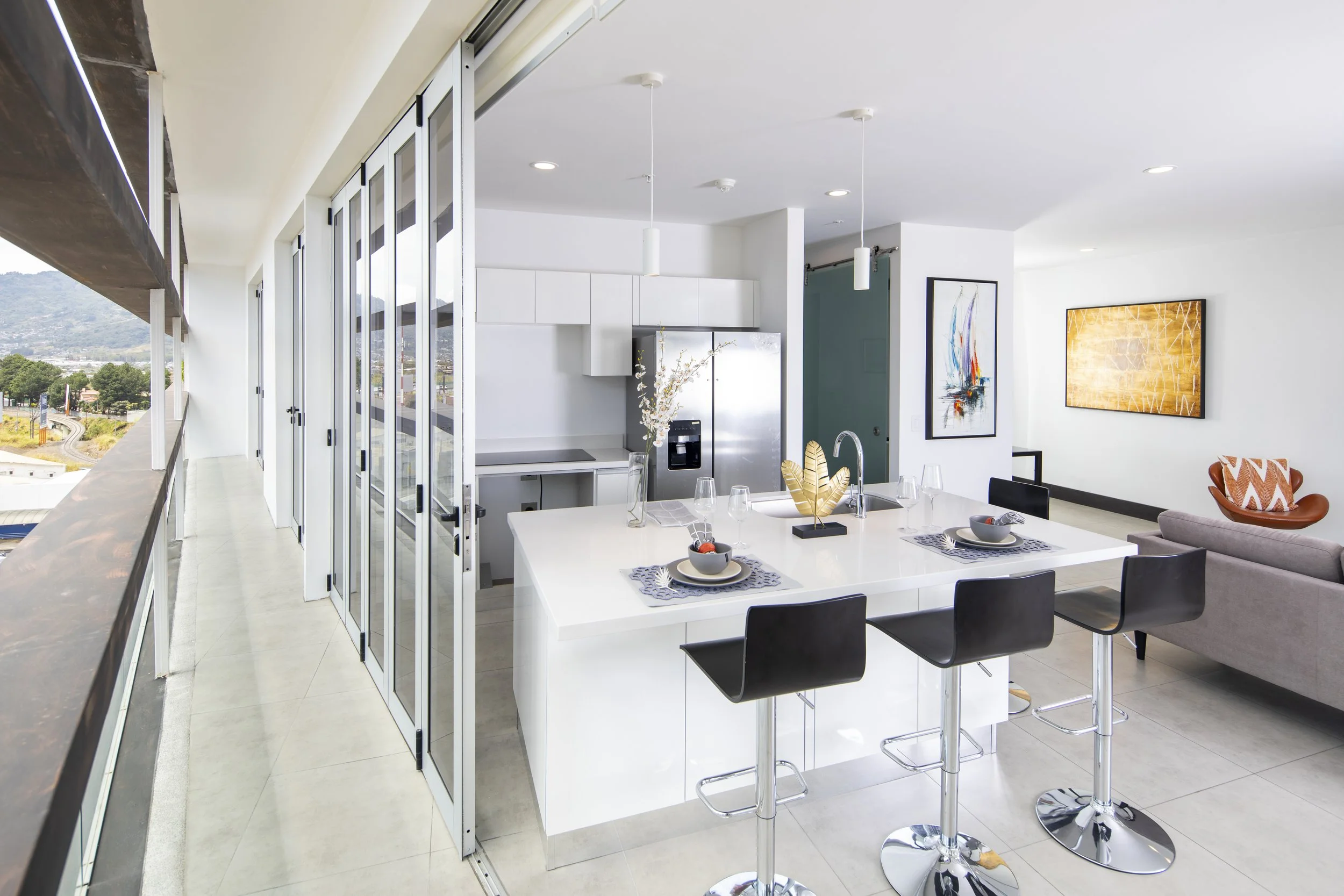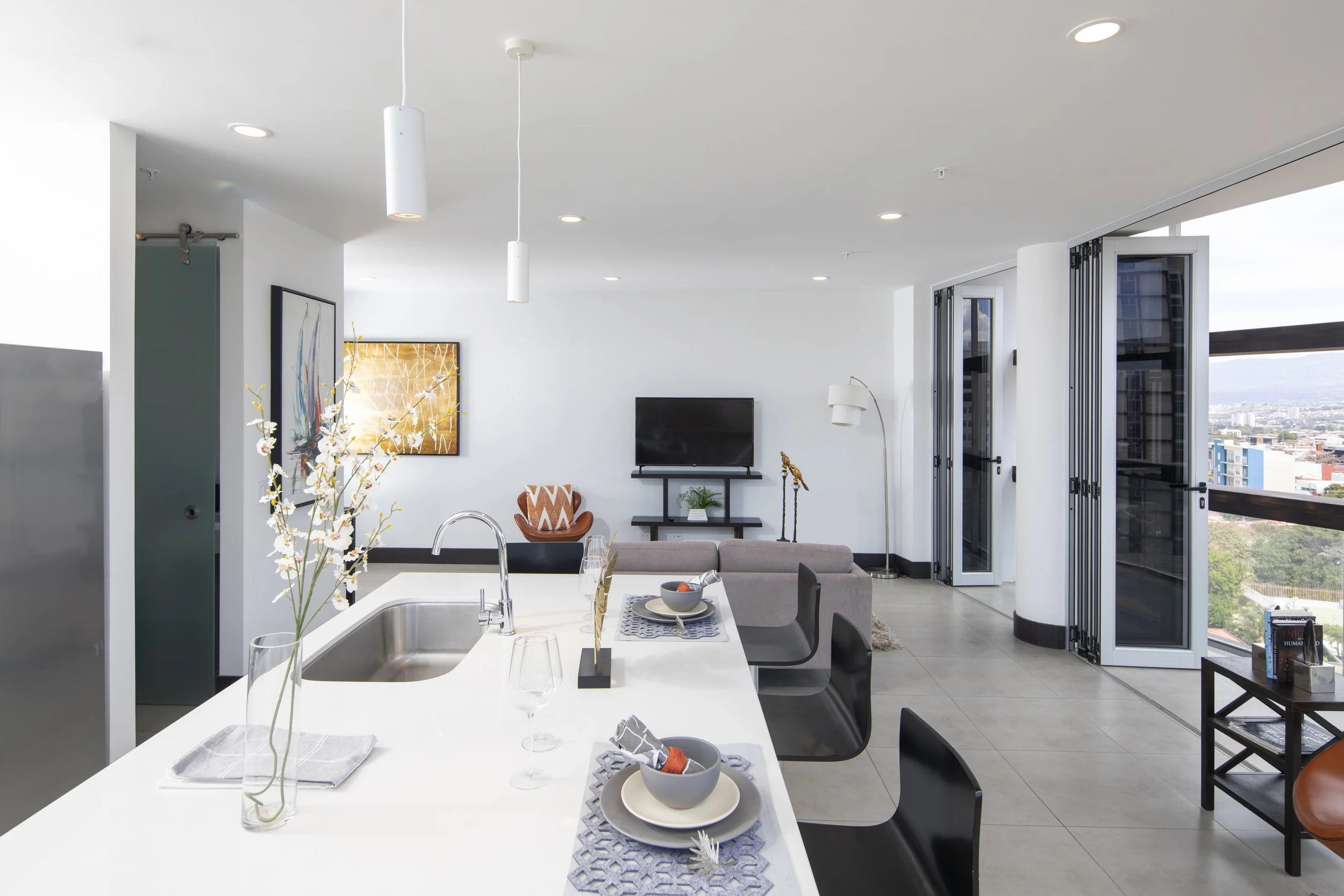 Amplio apartamento de 2 habitaciones en un exclusiva torre de solo 40 apartamentos. El apartamento tiene una excelente distribución y espacios amplios. Los balcones que rodean todo el apartamento y una excelente vista a las montañas del Valle Central.